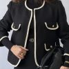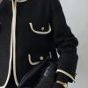 یک کت لوکس و شیک با ترکیب مشکی و نوارهای سفید روی سرآستین و لبهها ✨